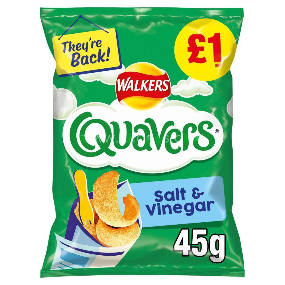 Walkers quavers salt & vinegar weighing 45g is tasty and delicious snacks to enjoy at home, at work or on the go.
